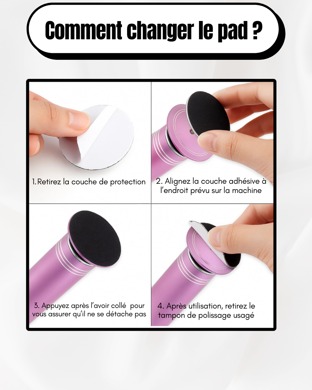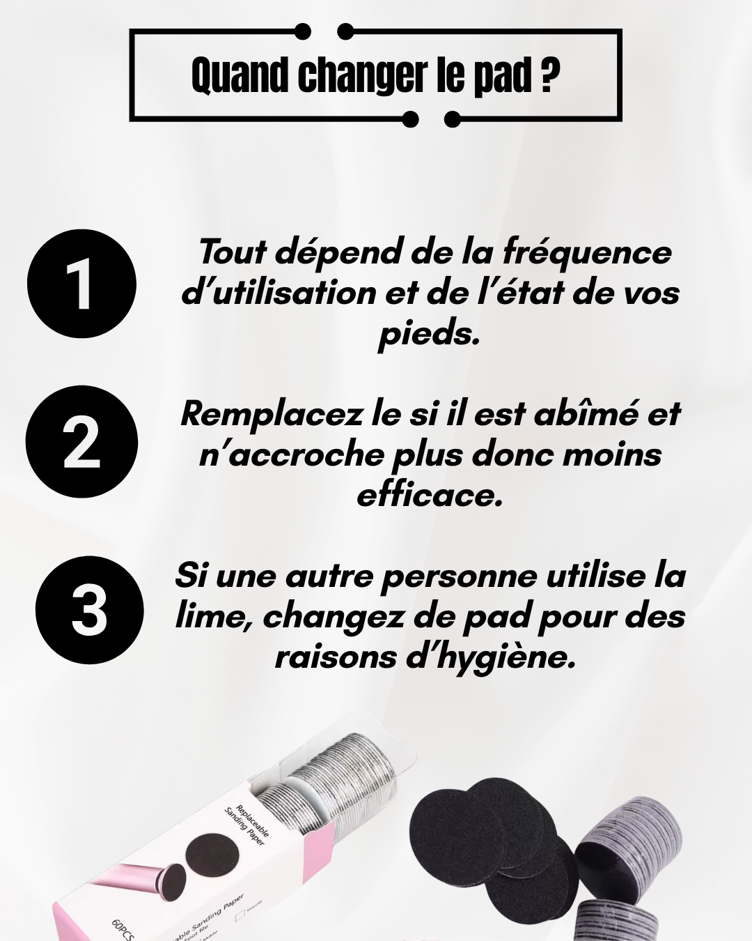 Prolongez l’efficacité de votre lime électrique avec nos pads rechargeables. Faciles à remplacer, ils garantissent un soin précis, durable et toujours performant pour des pieds doux au quotidien.