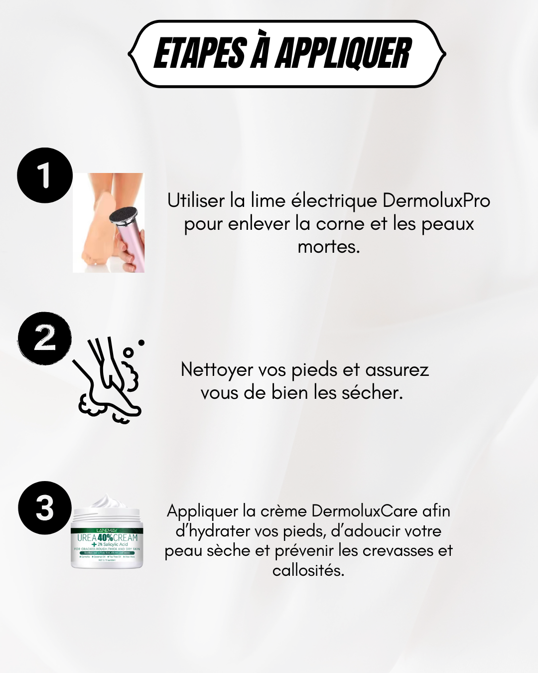 Parce que chaque détail compte, DermoluxPro s'engage à vous faire retrouver la beauté naturelle de vos pieds. Une peau lisse, douce et soignée.